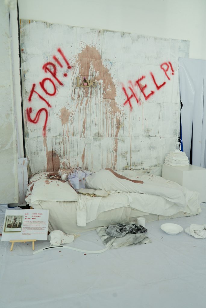 Rooted in Swahili, maskan means “home”, a place of refuge, warmth, familiarity. Yet in this exhibition, the word is turned inside out, revealing the painful irony that for many Kenyan women and girls, the spaces meant to protect them have become dangerous, deadly sites. Bedrooms, living rooms, apartments, matrimonial homes; places where safety is assumed, have increasingly become the backdrop of violence. In calling the work MASKAN, the artist asks: What does it mean when home is the most unsafe place?